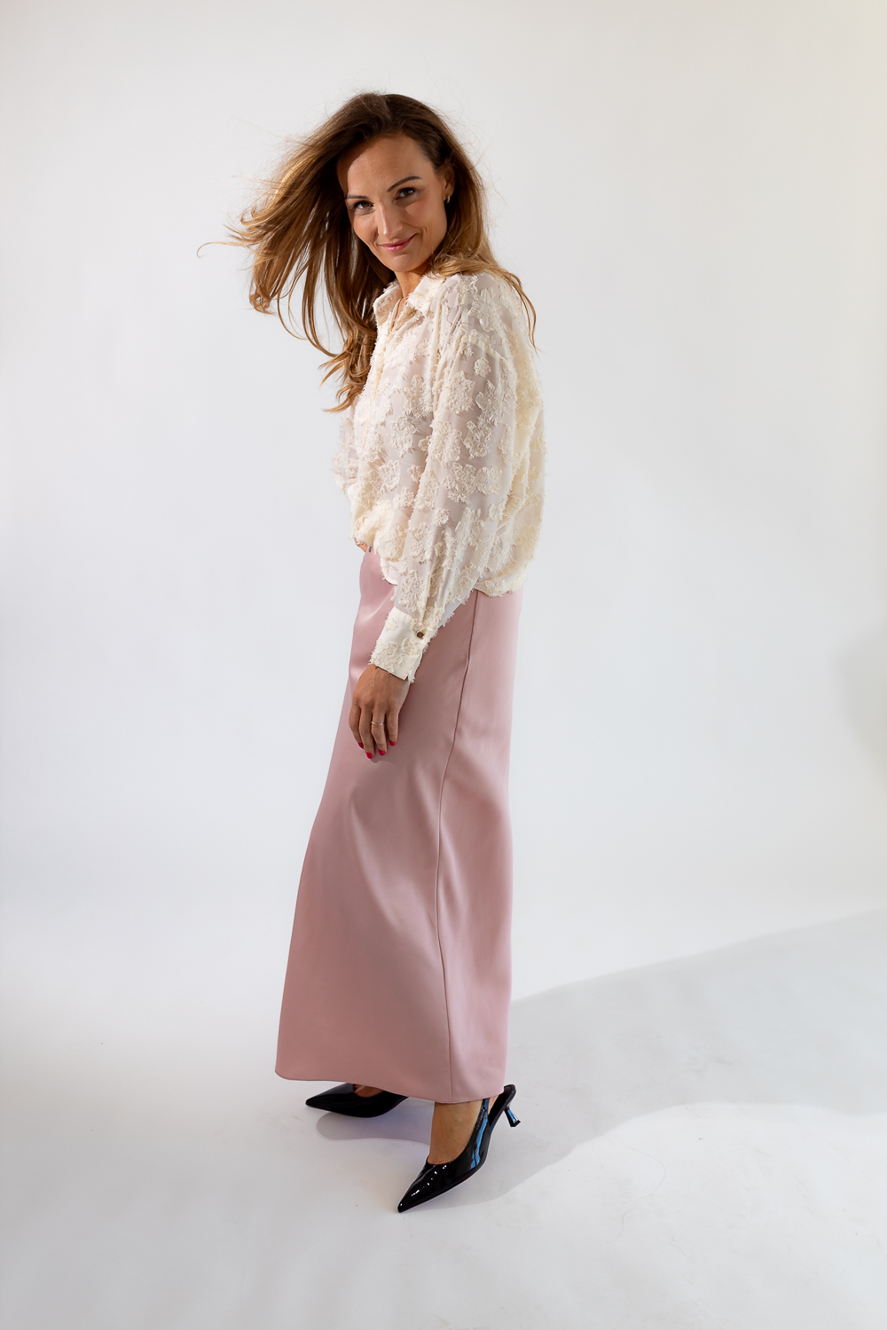 SVARĪGI! Tā kā fotosesija šiem vēl nav bijusi, tad ielieku informatīvu bildi, kur dāmai mugurā ir puderrozā slip svārki (maxi garums).