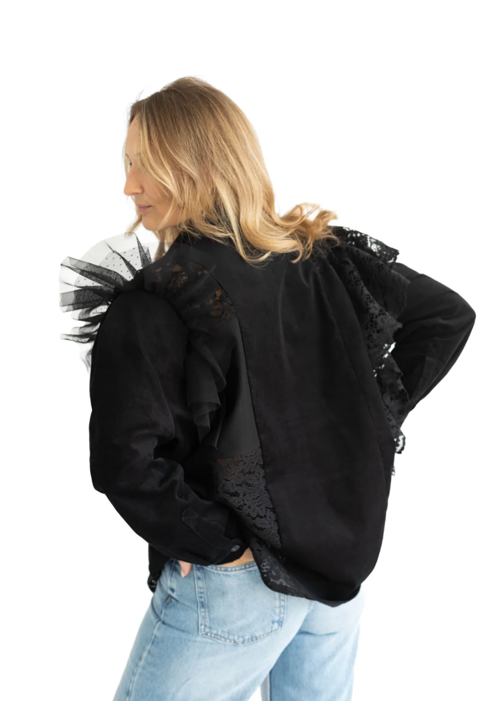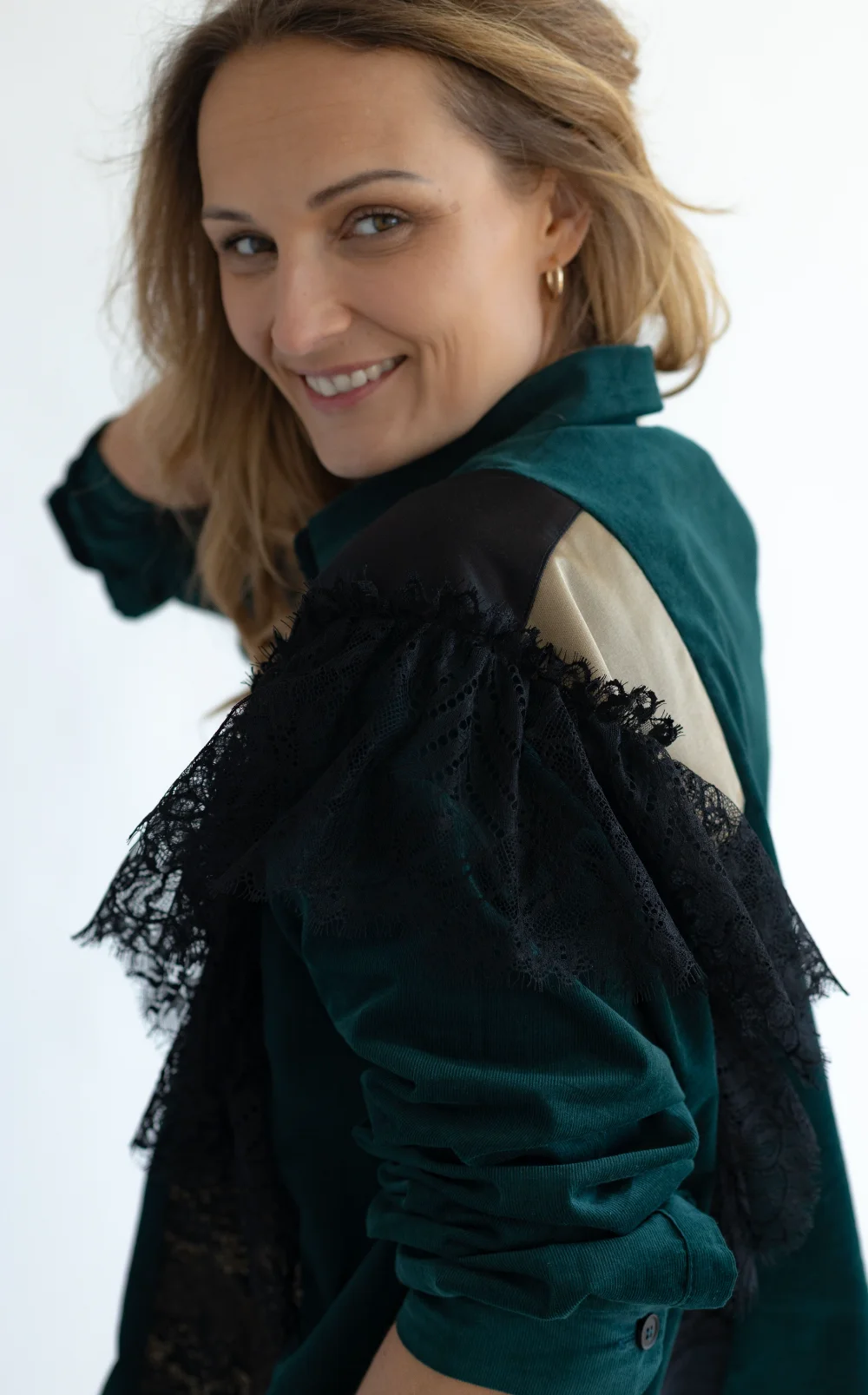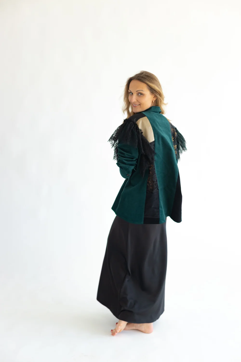 Šie unikāla dizaizna krekli ir tapuši pateicoties manām klientēm. Šie krekli ir pilnīgi jauni, šūti no nulles. Tajos ir daudz mežģīņu detaļu, kuras spēlējas kopā ar tillu un daži sudraba pavedieni. Krekla pamats ir 100% kokvilnas velvets. Šo kreklu noteikti var izmantot kā virskārtu vēsākos vasaras vakaros, velkot kopā ar slip kleitu, T- kreklu vai kādu citu apģērbu.