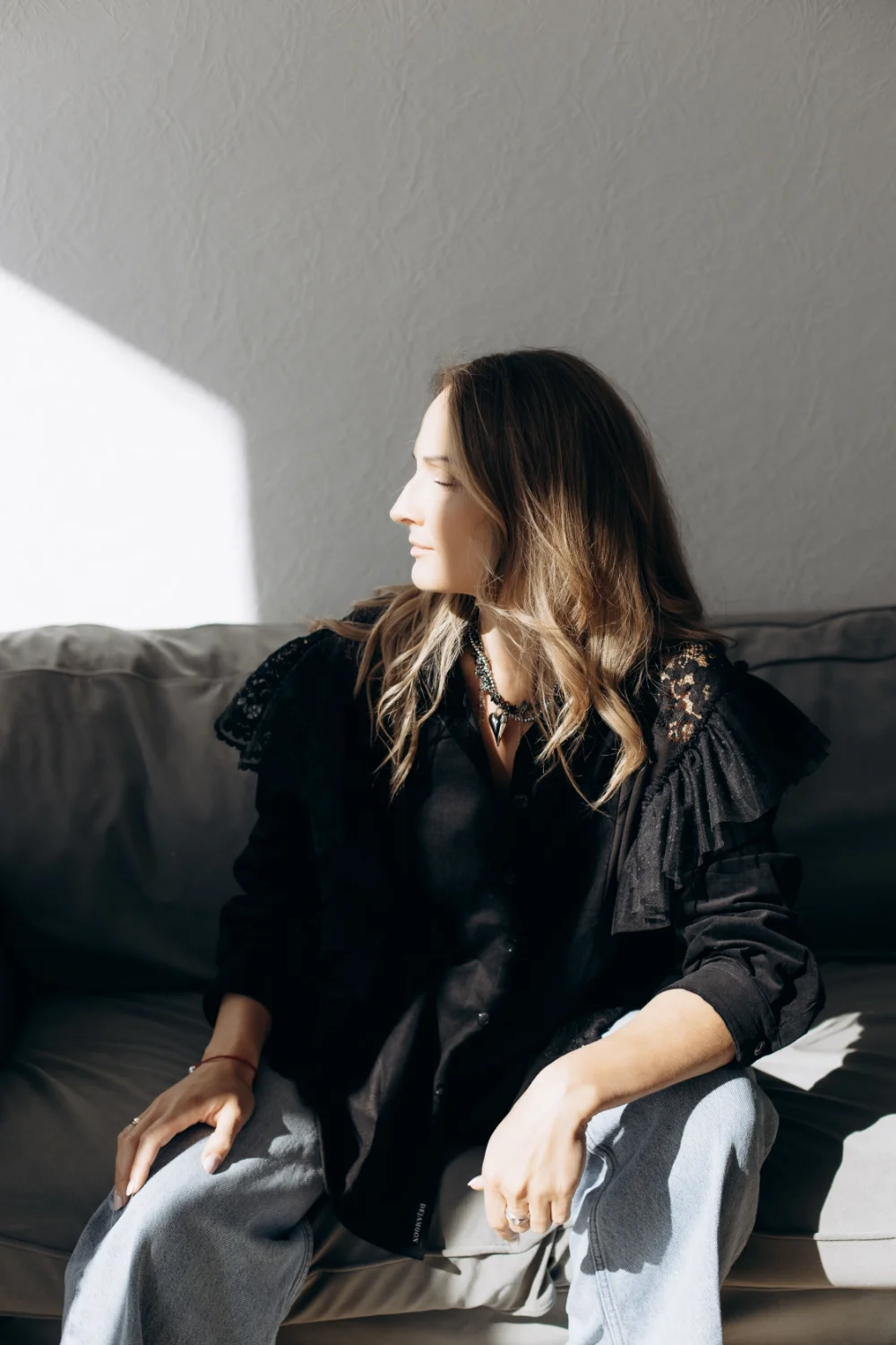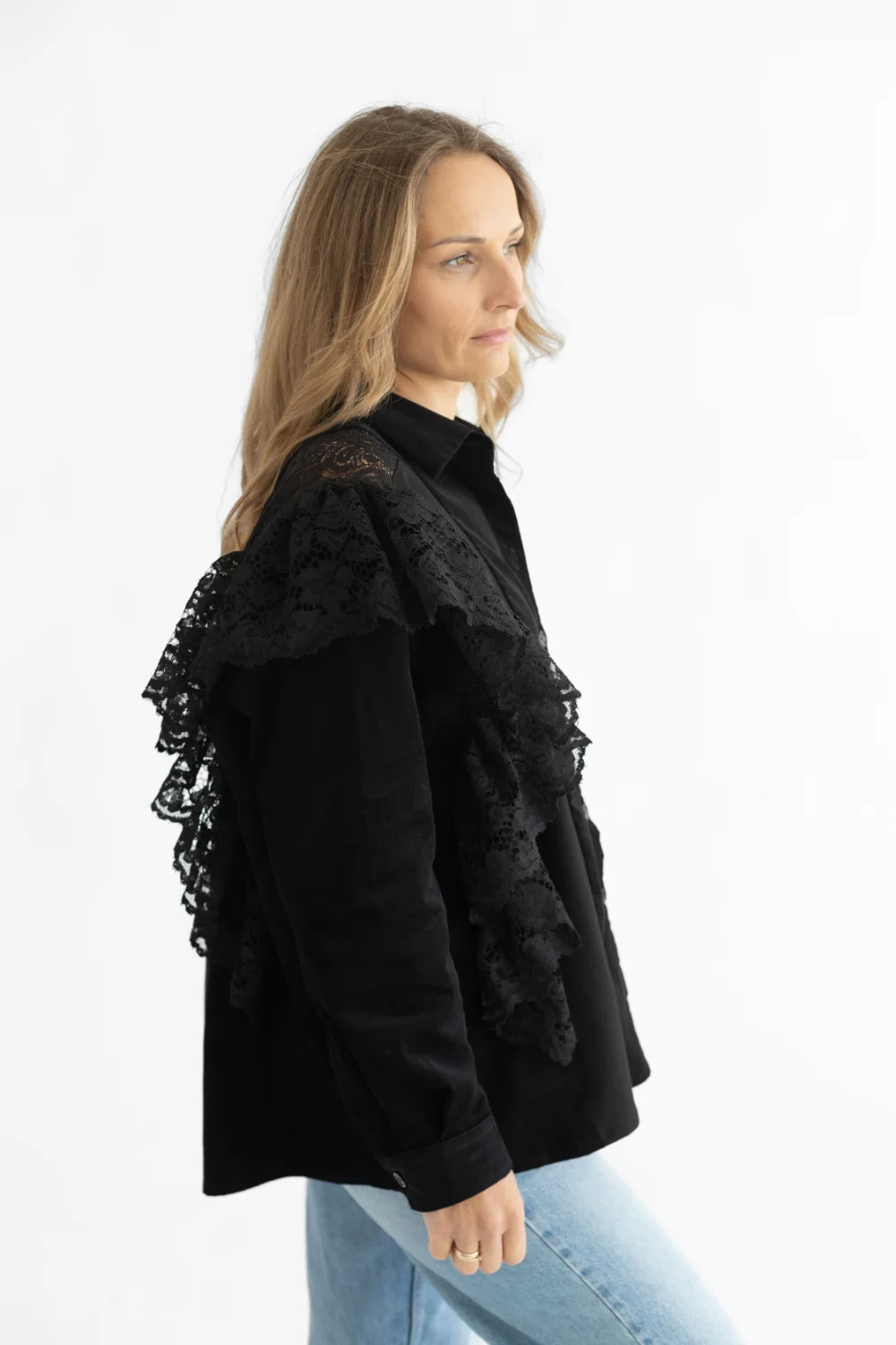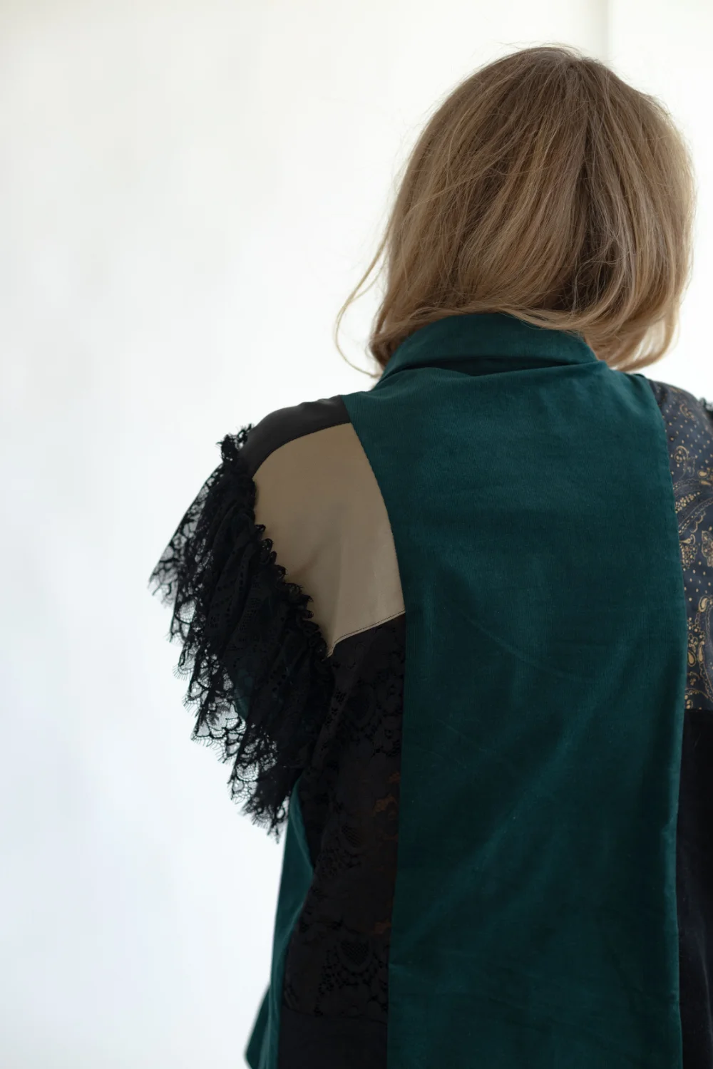 Šie unikāla dizaizna krekli ir tapuši pateicoties manām klientēm. Šie krekli ir pilnīgi jauni, šūti no nulles. Tajos ir daudz mežģīņu detaļu, kuras spēlējas kopā ar tillu un daži sudraba pavedieni. Krekla pamats ir 100% kokvilnas velvets. Šo kreklu noteikti var izmantot kā virskārtu vēsākos vasaras vakaros, velkot kopā ar slip kleitu, T- kreklu vai kādu citu apģērbu.