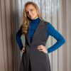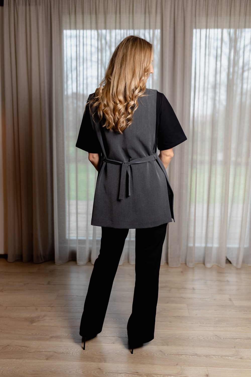 Vestes sānu vīlēs ir vaļā, tajās iestrādāti dizainiski elementi, lai vesti padarītu interesantāku.