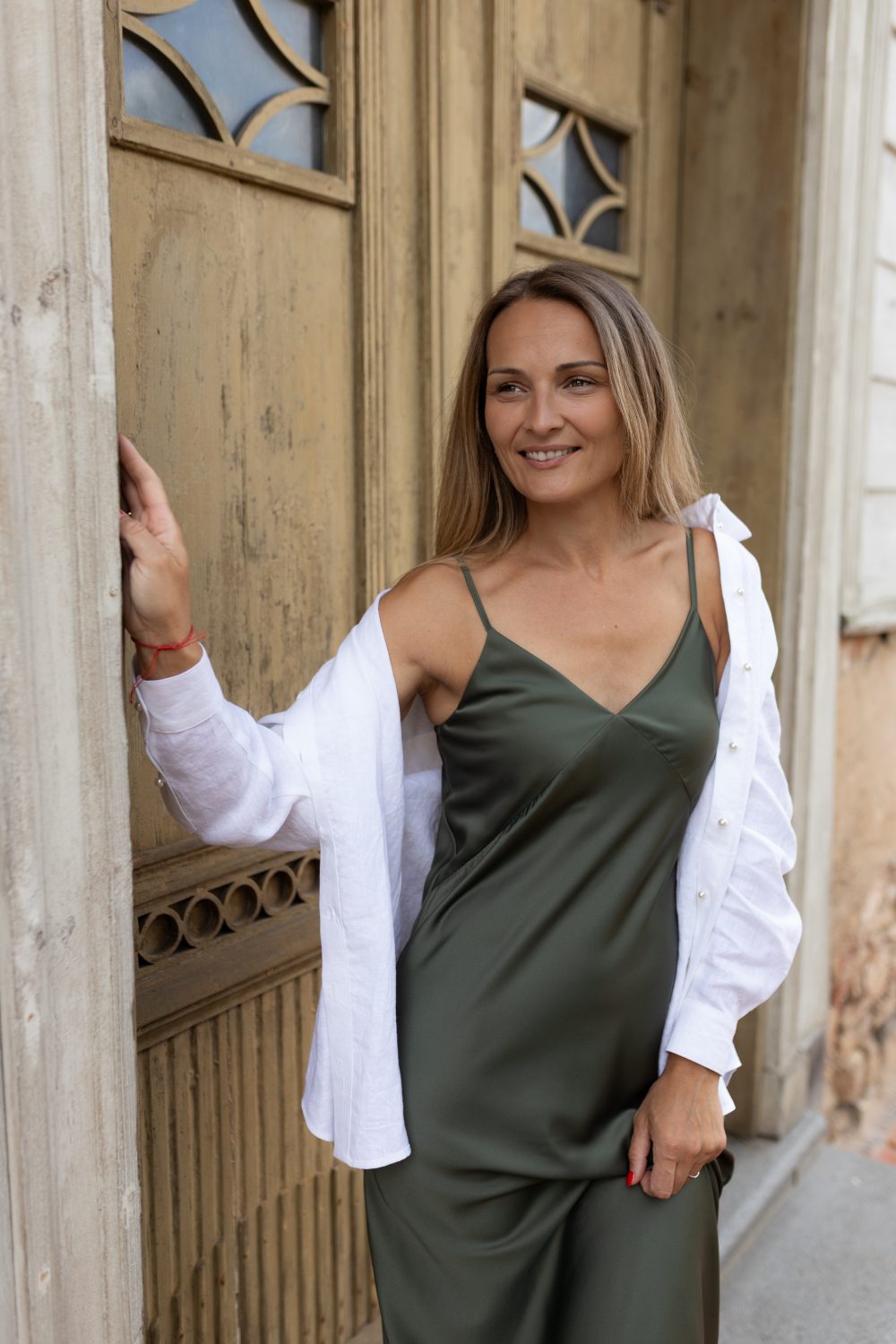 Slip kleita ir universāls apģērba gabals Tavā garderobē, kas viegli kombinējas ar dāžadiem aksesuāriem un citiem apģērba gabaliem Tavā garderobē. Kleita šūta no kvalitatīva satīna audumu ar nelielu spīdumu. Uzvelkot kleitu būs ļoti patīkamas sajūtas ādai saskaroties ar audumu.