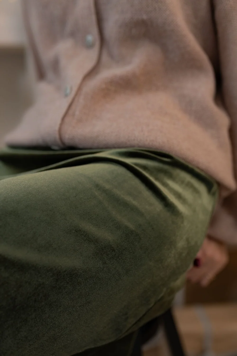 Svārkiem ir A silueta piegriezums, vidukļa daļā iestrādāta gumija.